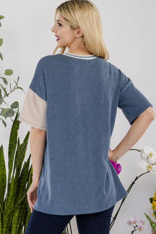 Celeste Full Size Rib Contrast Short Sleeve T-Shirt